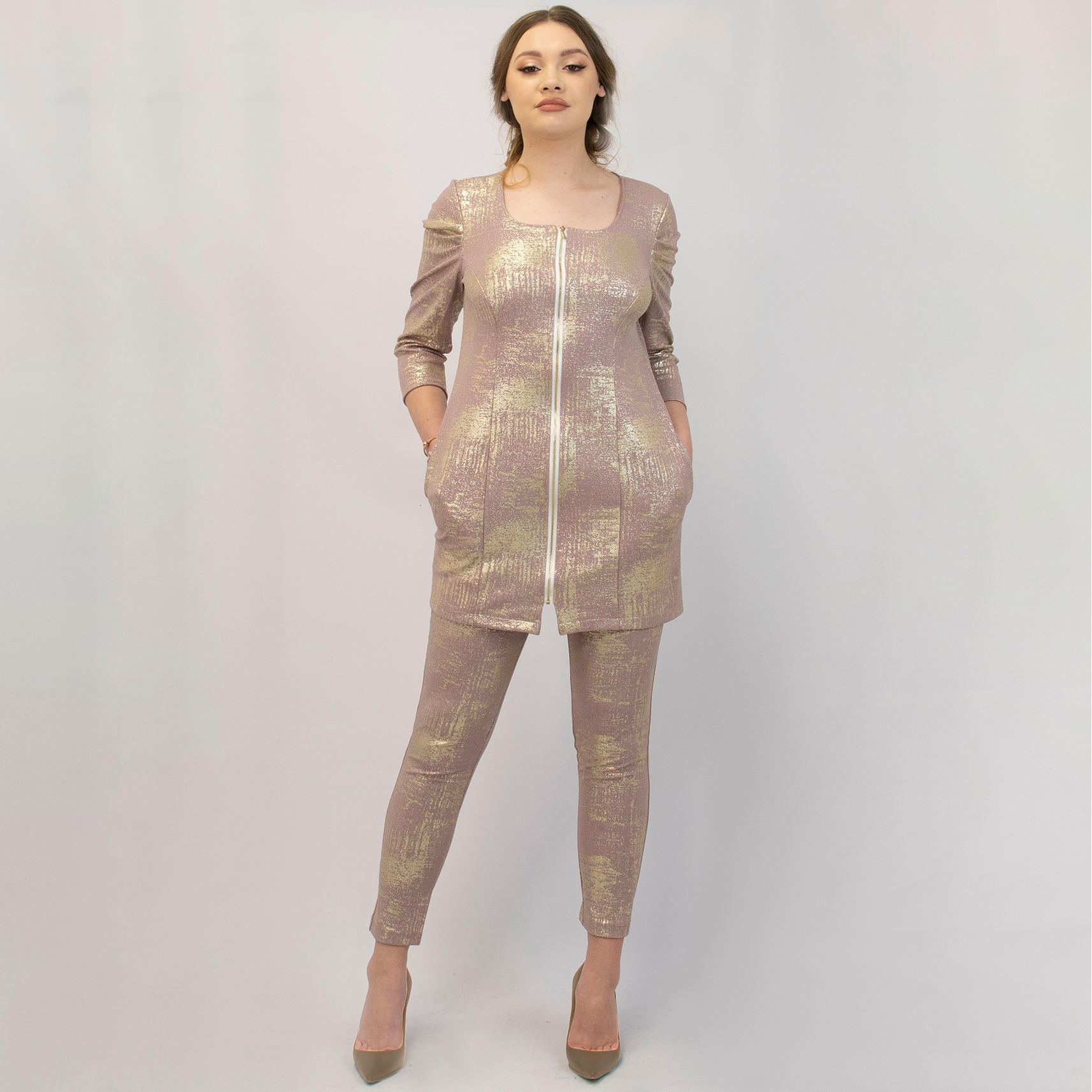 •Tkanina z dodatkiem lajkry, oddychająca – która spełnia bardzo wysokie wymagania; jest leciutka, mięciutka, oddycha – bardzo szybko odparowuje; wygodna, piękna i stylowa.